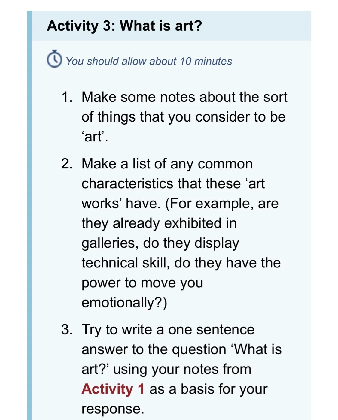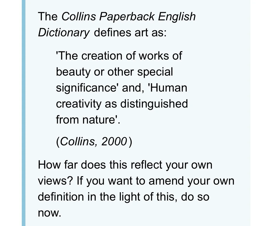 The word ‘medium’ (plural ‘media’) refers to the substance used to make a particular art work. The range of media used in the art works featuring in this course is wide, including oil paint, animal carcasses, elephant dung, photographs, glitter and road signs. When analysing the relationship between techniques and effects in any painting you should note the medium from which it has been made. Ask yourself why the medium was chosen. Some helpful questions are: