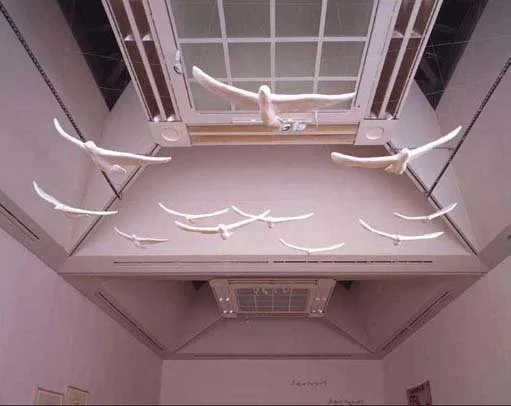 PLATE 14: Tracey Emin, In My Family When Someone Dies They Are Cremated And Their Ashes Are Thrown Across The Sea, 1997, plaster, white paint, eleven seagulls, 450 × 555 × 413 cm (variable) installation. (© The artist. Courtesy Jay Jopling/ White Cube, Lo